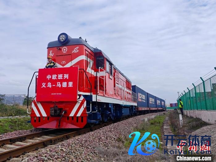 11月18日,浙江义乌中欧班列迎来开行十周年。一回满载出口货色的中欧班列从铁路义乌西站驶出。 记者董易鑫摄