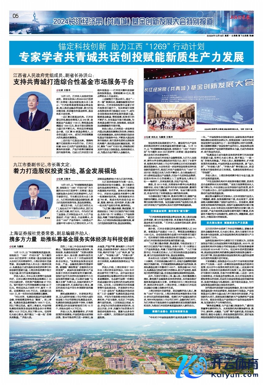 12月13日,以“科创赋能高质料发展,创投助力‘1269’行动谋略”为主题的2024长江经济带(共青城)基金改进发展大会在江西共青城举行。九江市委副通知、市长蒋文定在大会上暗示,九江将加速股东基金改进发展,服从打造股权投资宝地、基金发展福地。