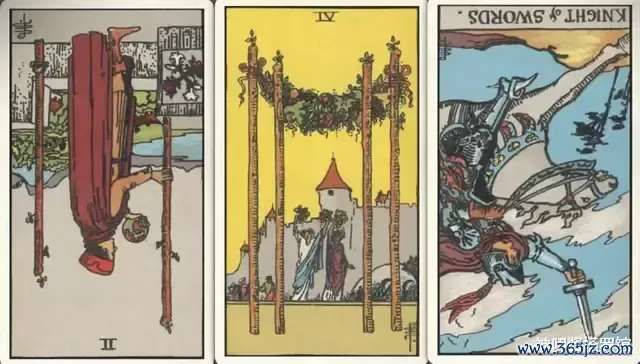 牌:权杖二- 权杖四+ 宝剑骑士-