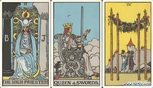 牌:女祭司+ 宝剑皇后+ 权杖四+