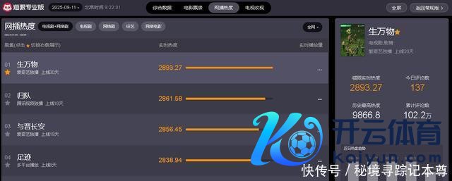 适度9月11日9时22分,从“猫眼专科版”及时数据炫夸可知,现时热播电视剧中,网播热度最高的五部剧鉴识如下:       1、《生万物》       主演:       杨幂/欧豪/倪大红       剧情点评:冲着题材和演员声势去看的,不得不说       传教味儿也曾重了点。剧情其实挺好,不外临了6集一下子些许年昔时了一下子些许年昔时了就很赶很跳,有点烂尾。绣绣孩子掉了之后只怕过了几年有俩孩子了,费大肚子从馋嘴懒作念一会儿就酿成给宁学祥来送食粮了,皆跳过了好厚情节。刷到过原著演义的剧情就会以为电视剧作念了太多的好意思化责任,比如没味莫得随着腻味变坏,反而协助村民们制服了腻味,比如宁学祥莫得被腻味弄死,宁可玉也莫得和腻味同归于尽。为了能告成播出,这部剧也曾免不了一番和洽。但总体大醇小疵,也曾值得一看!